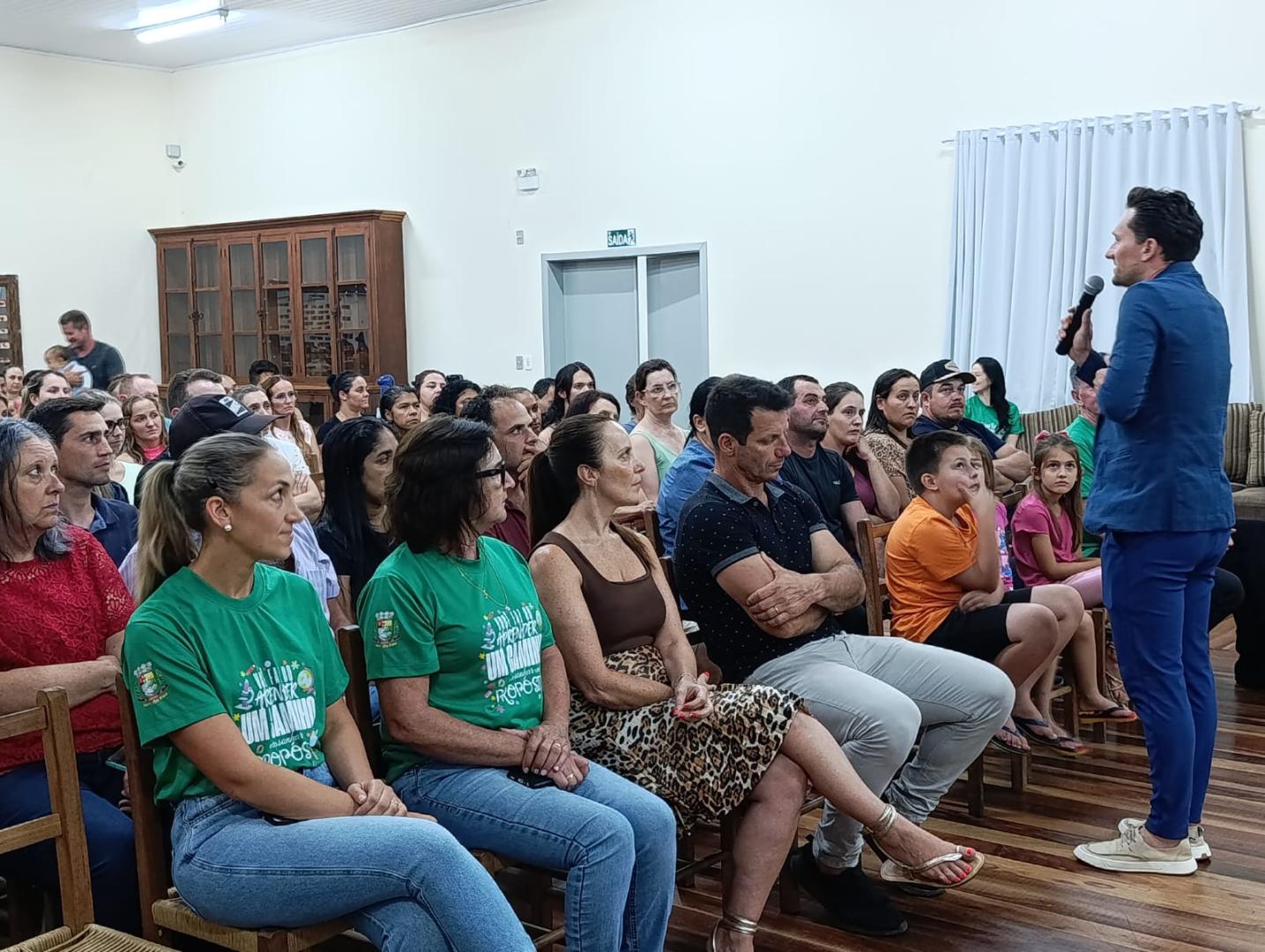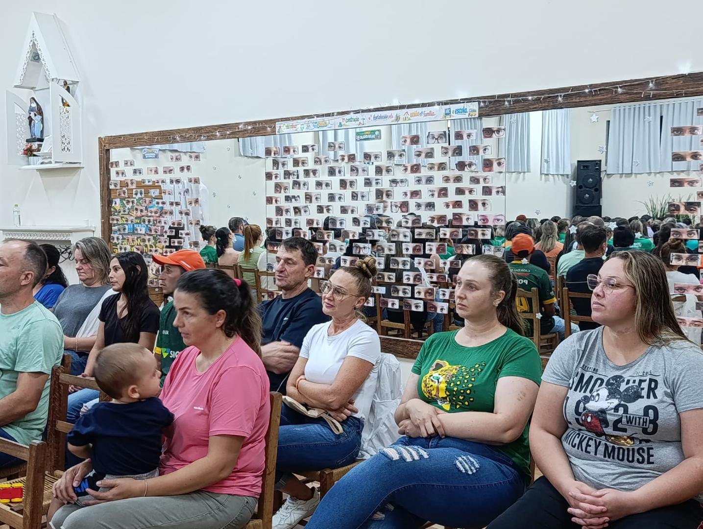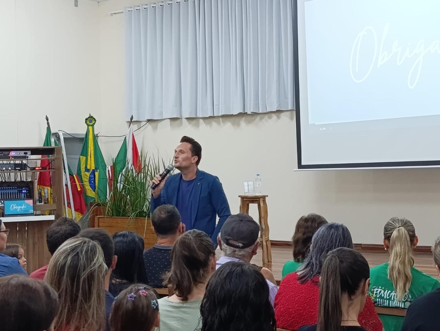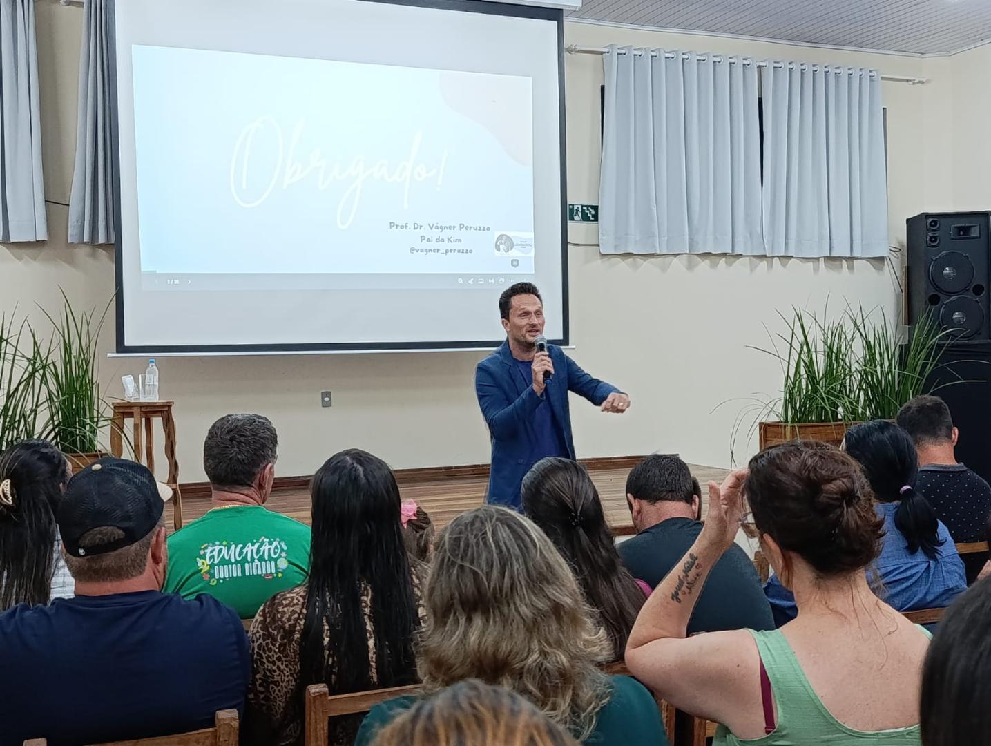 A noite contou com a palestra “Presença, o melhor presente”, com o Professor Dr. Vagner Peruzzo. A reflexão trazida não foi sobre os pais estarem presentes apenas na escola, mas sobre serem presentes na vida dos filhos, no cotidiano da família: dando atenção, carinho, escutando, dialogando e acompanhando seu crescimento.