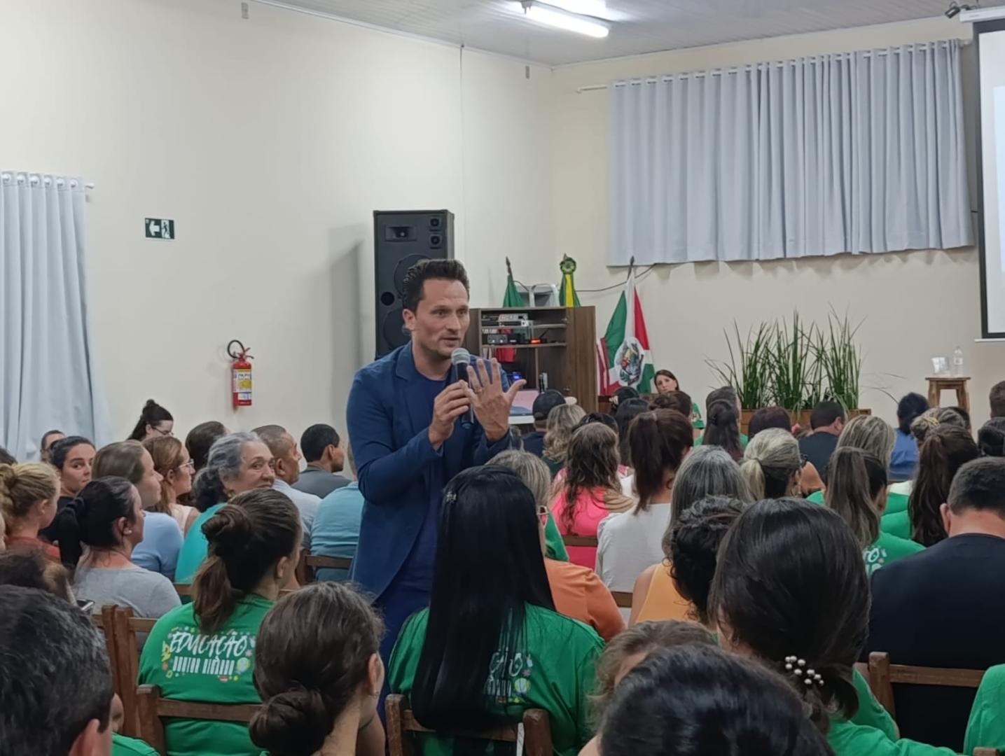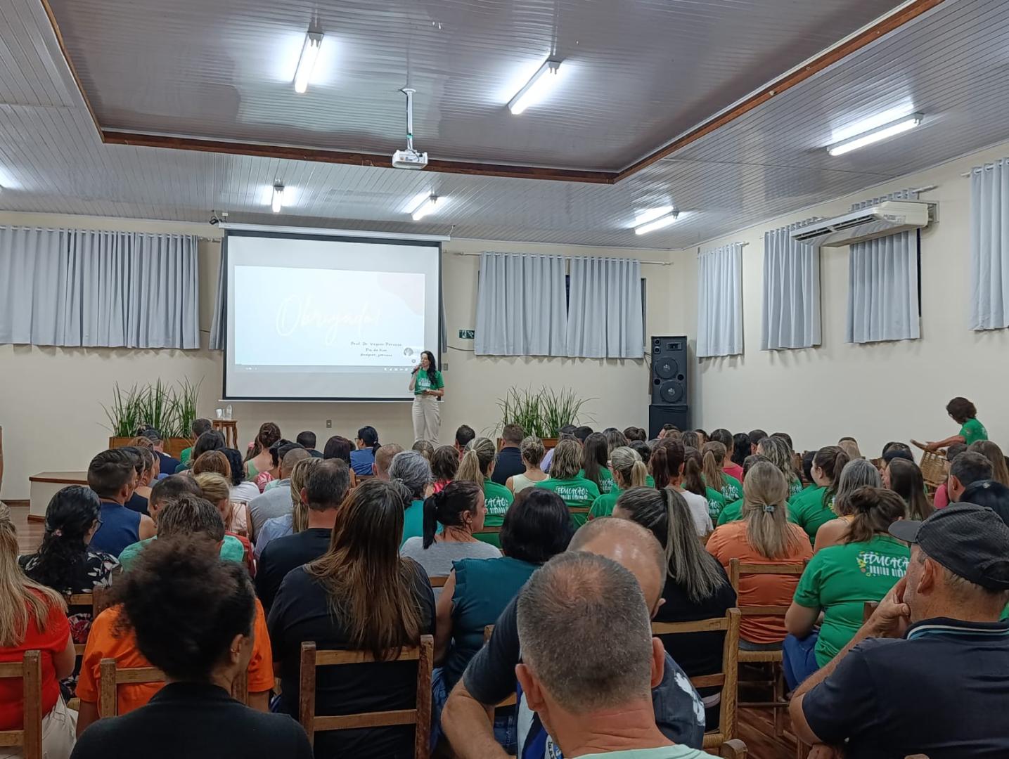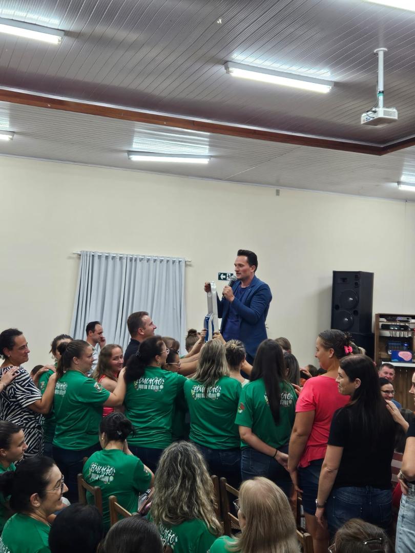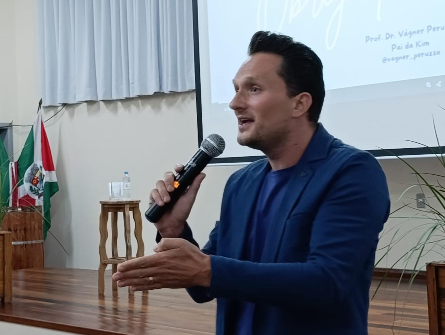 A noite contou com a palestra “Presença, o melhor presente”, com o Professor Dr. Vagner Peruzzo. A reflexão trazida não foi sobre os pais estarem presentes apenas na escola, mas sobre serem presentes na vida dos filhos, no cotidiano da família: dando atenção, carinho, escutando, dialogando e acompanhando seu crescimento.