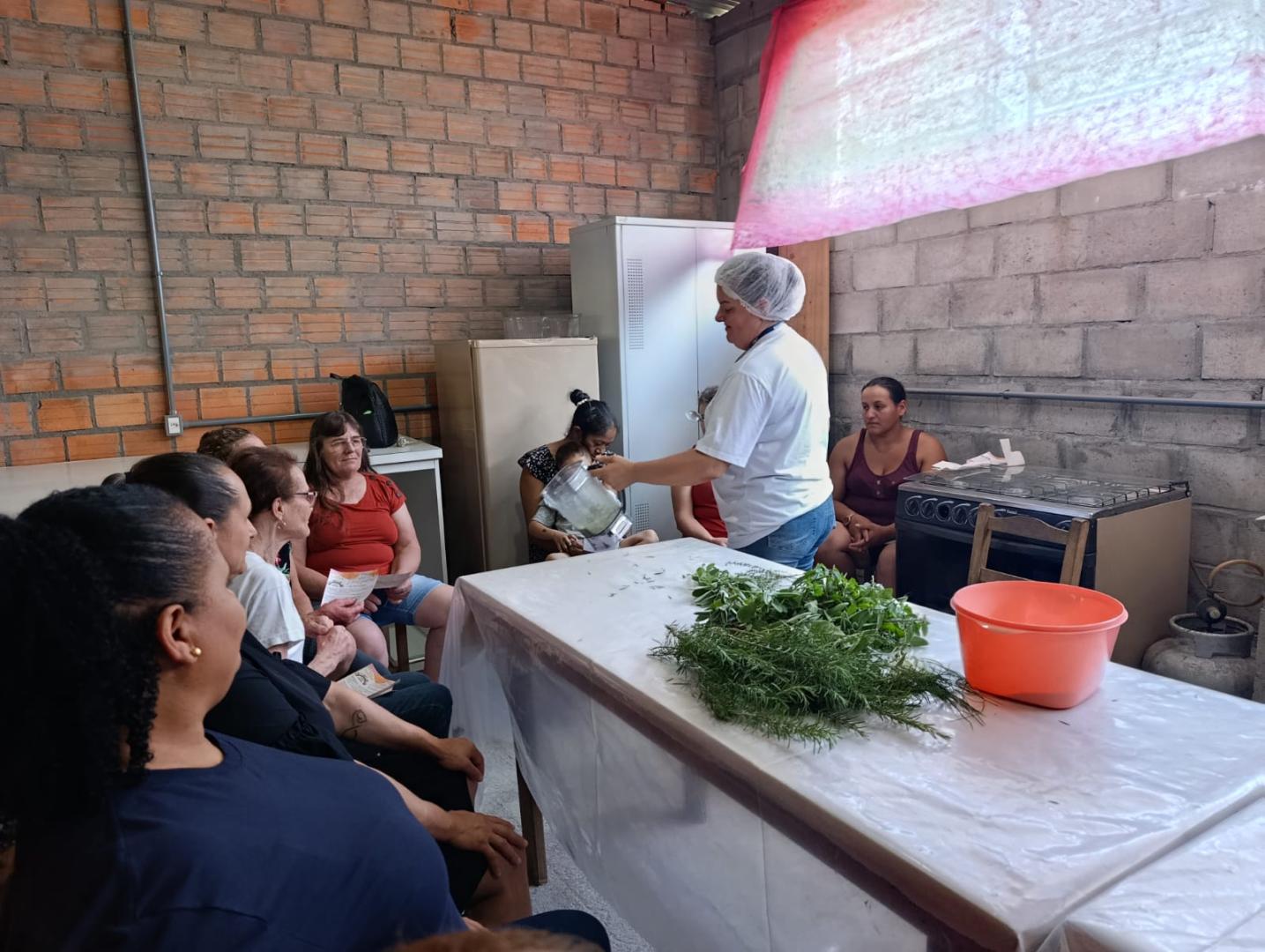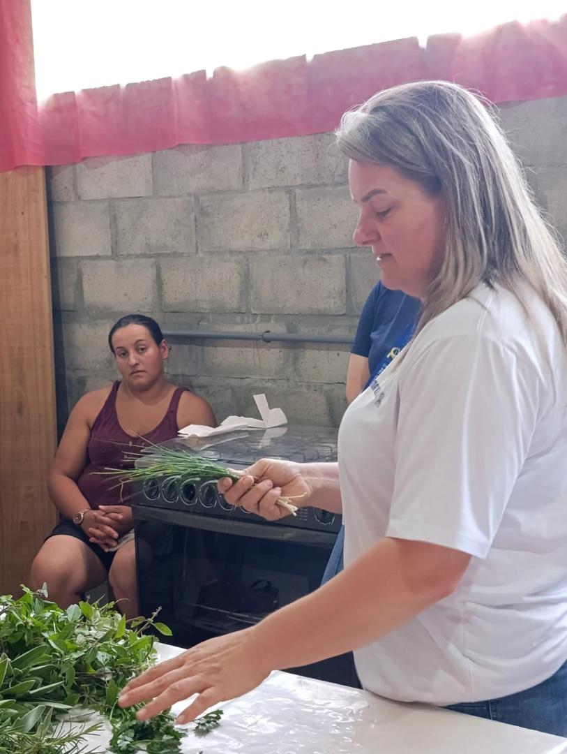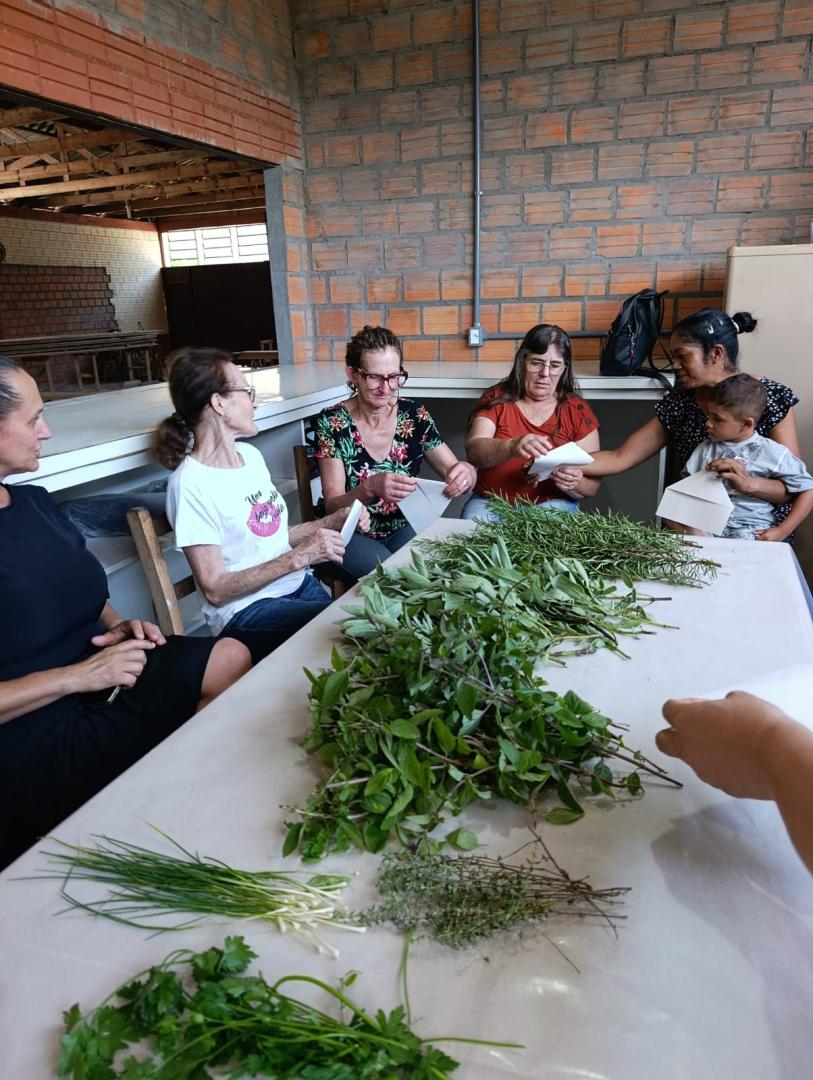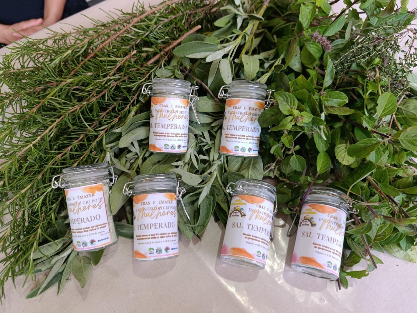 Na sequência, foi realizada uma atividade prática com a preparação de sal temperado. Cada participante trouxe seus próprios temperos e, após o preparo coletivo, todas puderam levar um pouco para casa, simbolizando a partilha, a união e o aprendizado vivenciado durante o encontro.