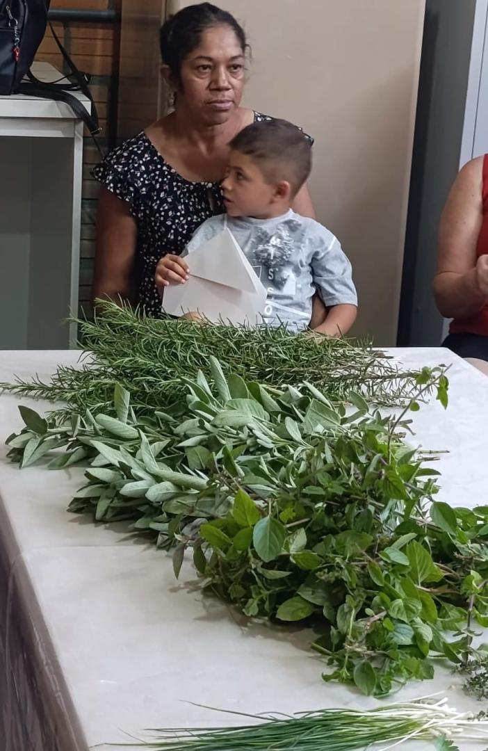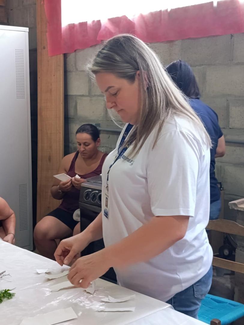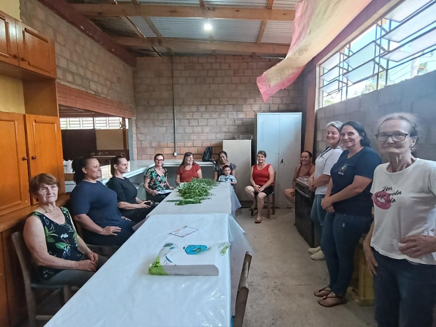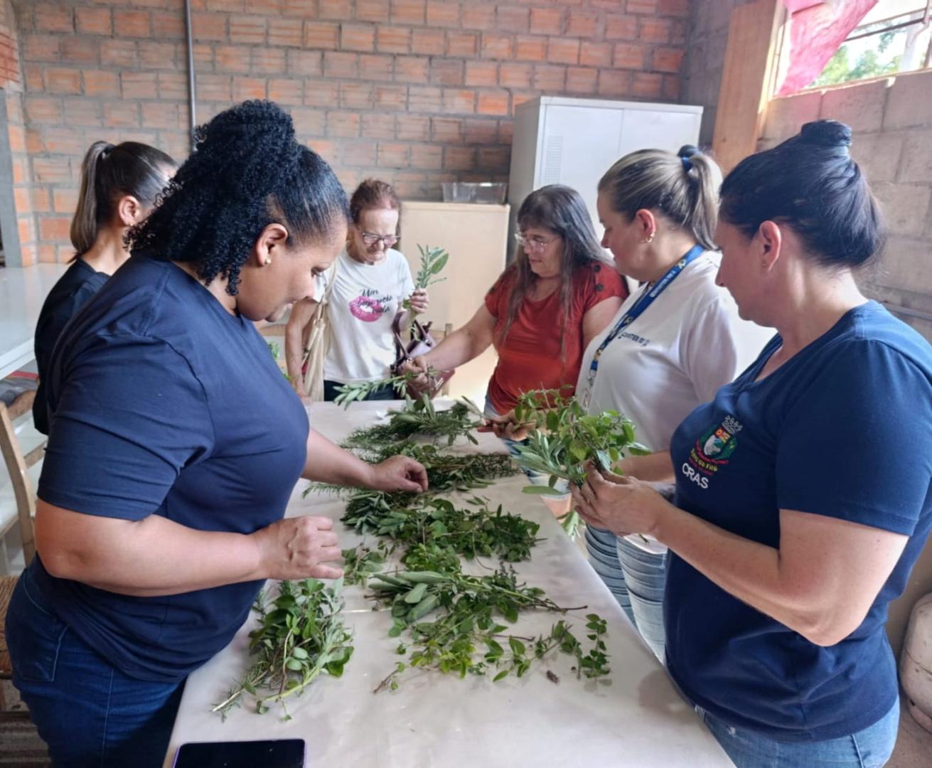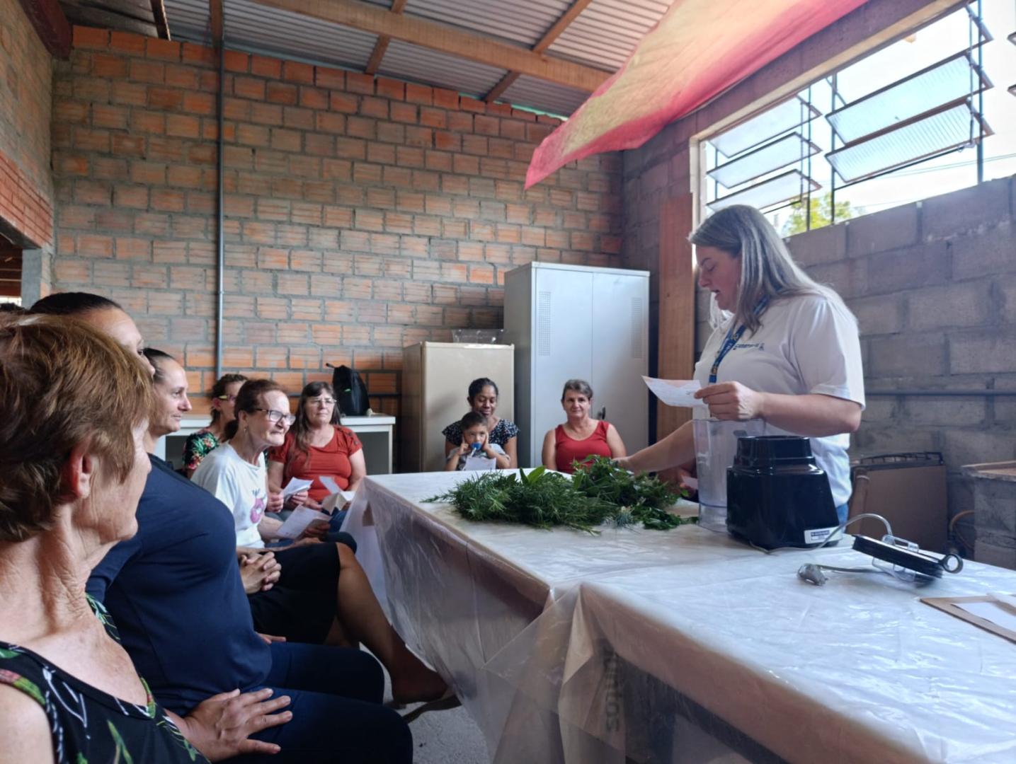 Na sequência, foi realizada uma atividade prática com a preparação de sal temperado. Cada participante trouxe seus próprios temperos e, após o preparo coletivo, todas puderam levar um pouco para casa, simbolizando a partilha, a união e o aprendizado vivenciado durante o encontro.