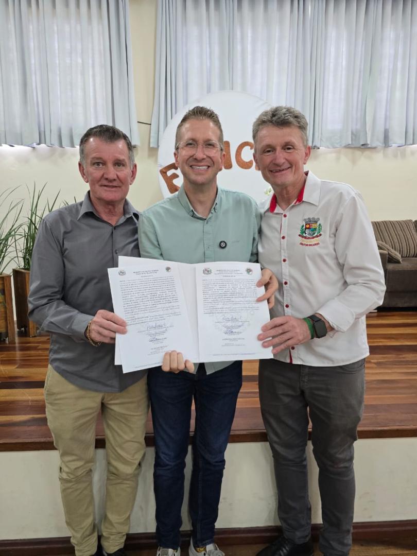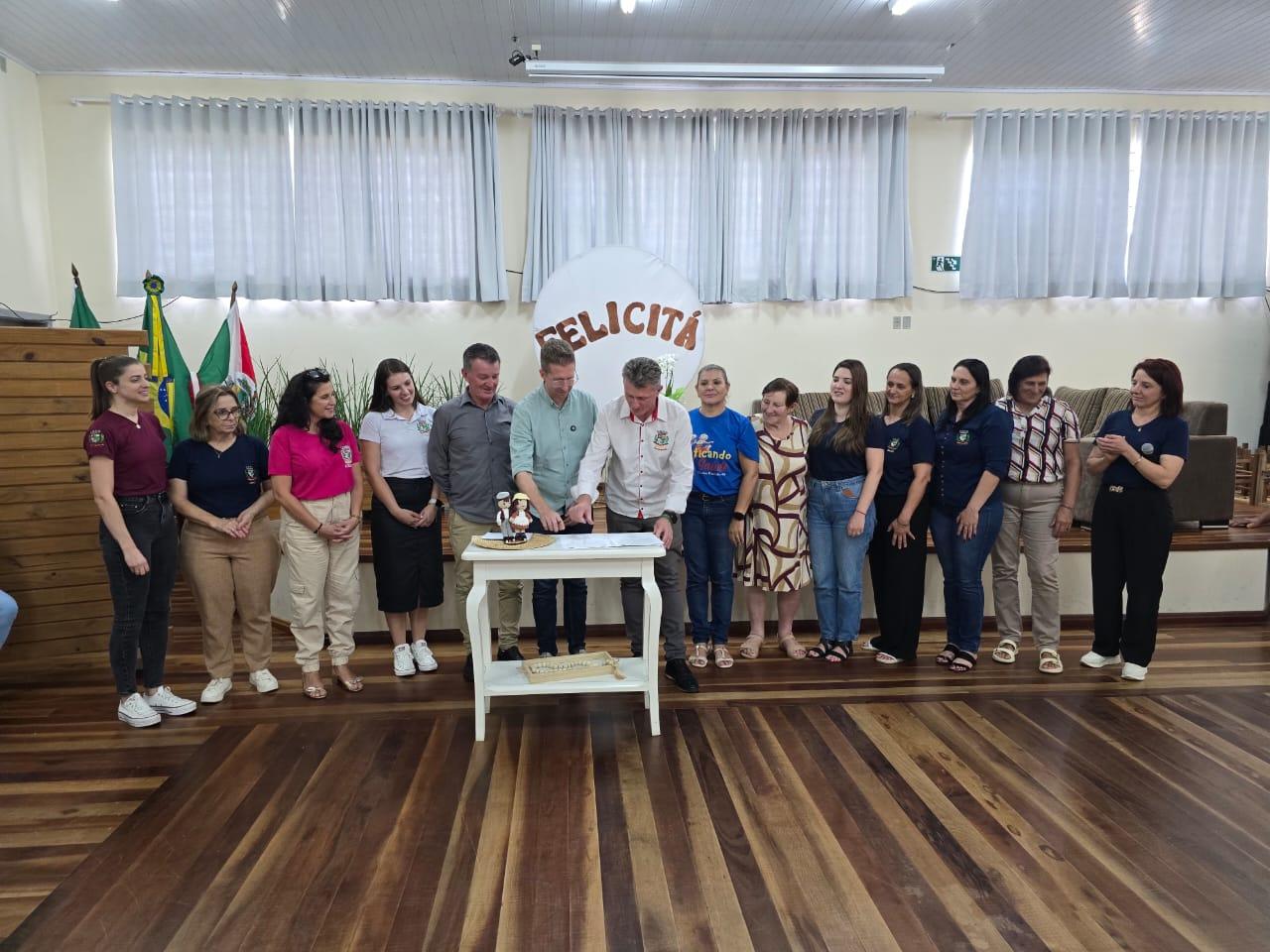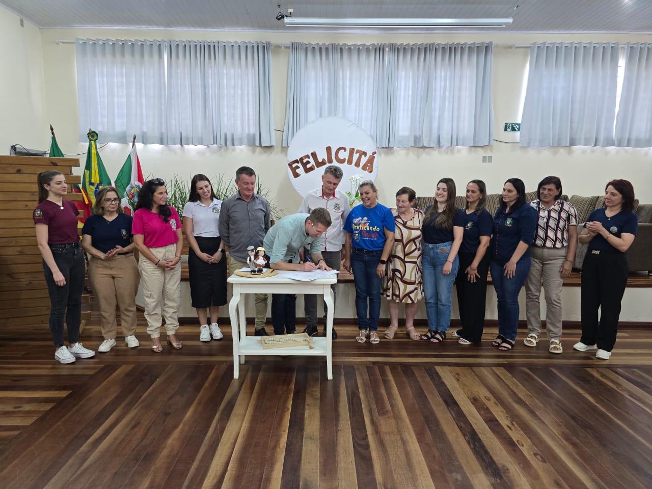 Primeiro Encontro do Ano do Grupo Felicitá Com apresença do Secretário estadual do Desenvolvimento Social do Rio Grande do Sul Beto Fantinel para assinatura do início das obras .