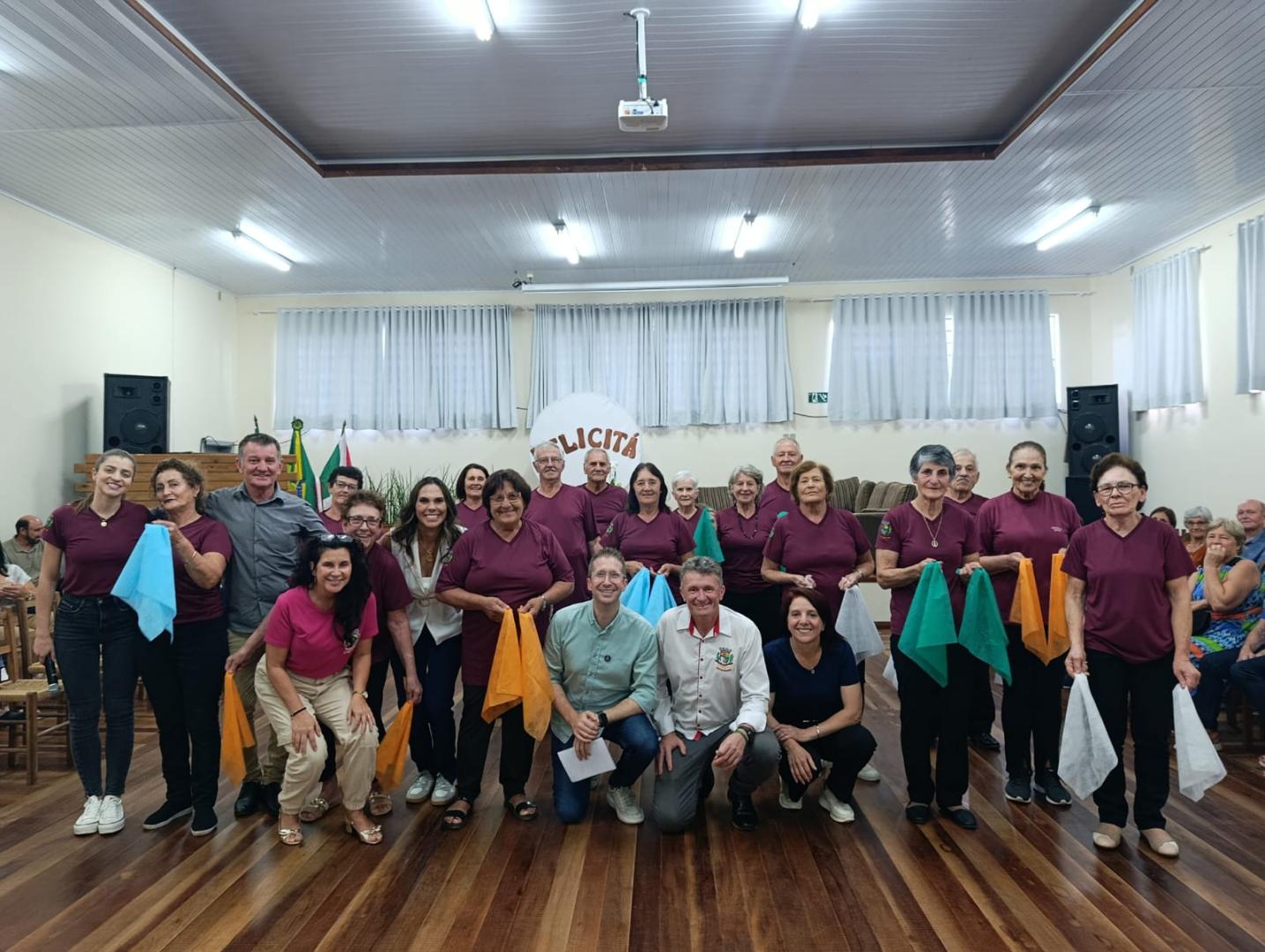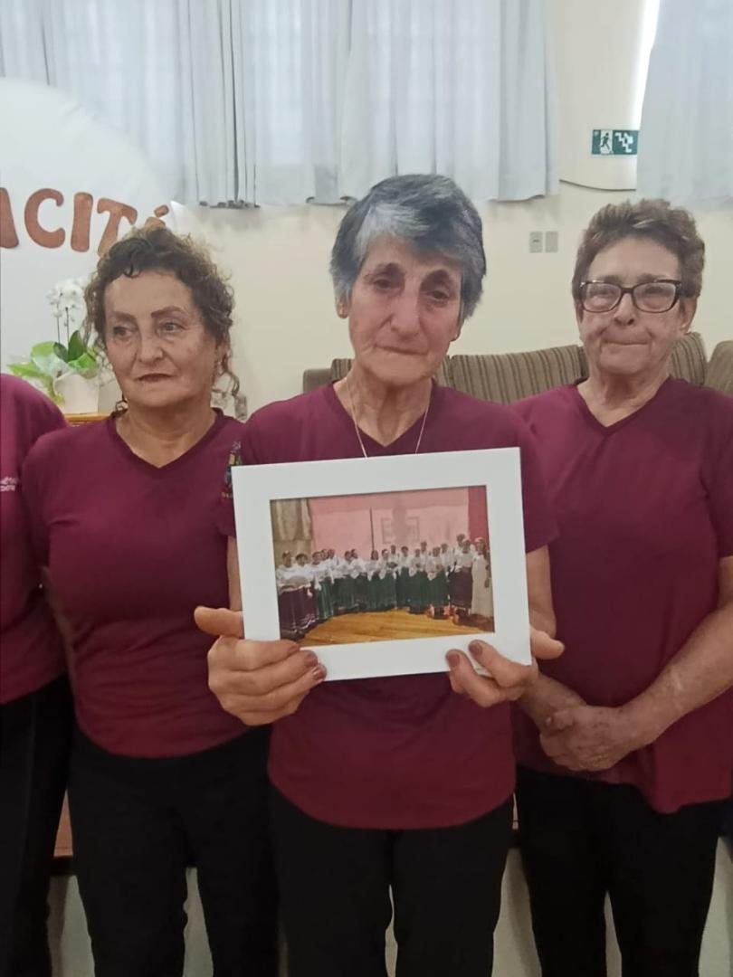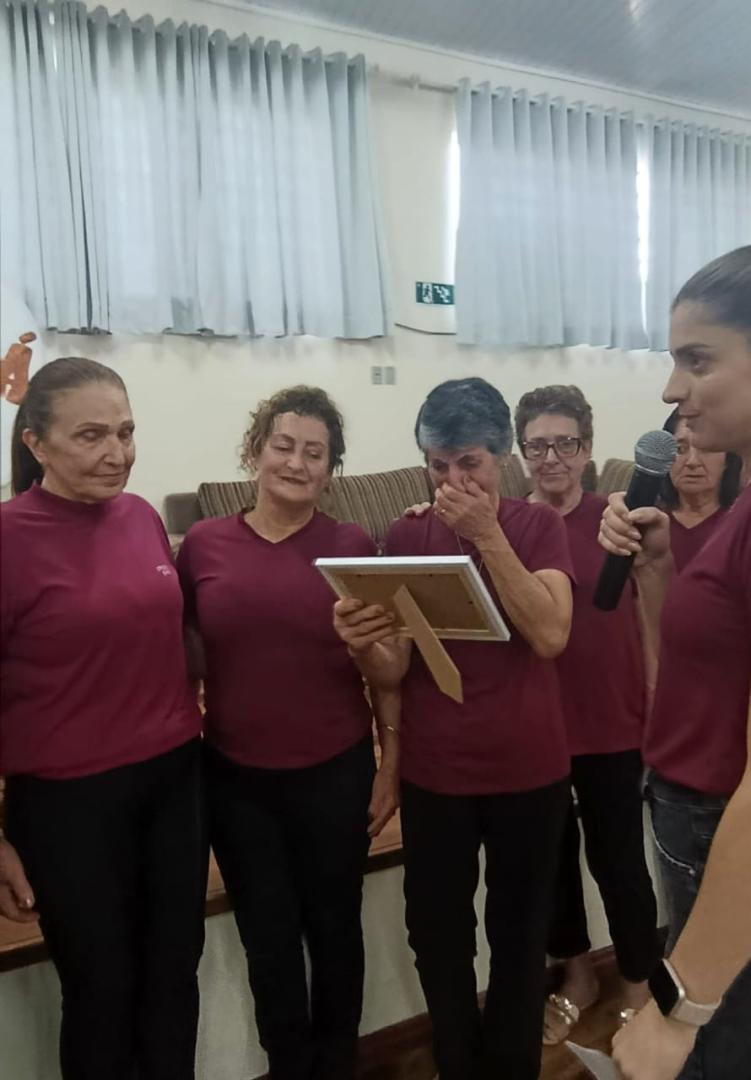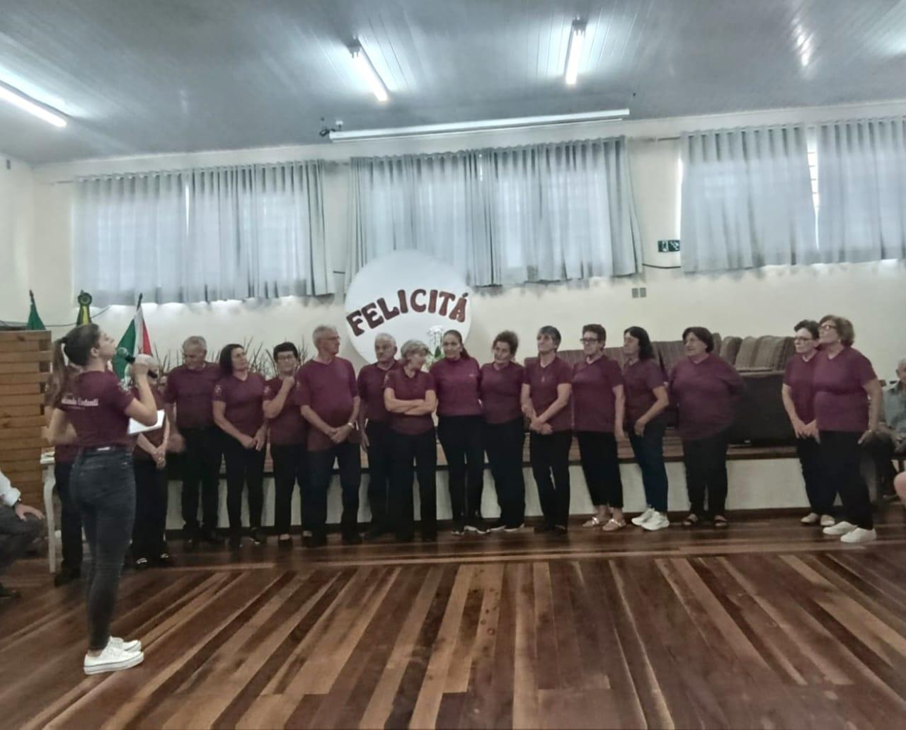 O encontro também contou com a primeira apresentação do Grupo Bailando Contenti , que trouxe música e dança com bastões, animando o público e tornando a tarde ainda mais especial.